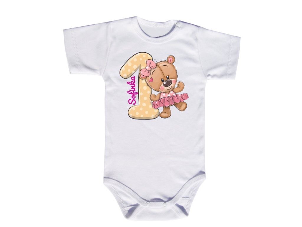 narodeninové body s menom - prvé narodeniny medvedik - krátky rukáv