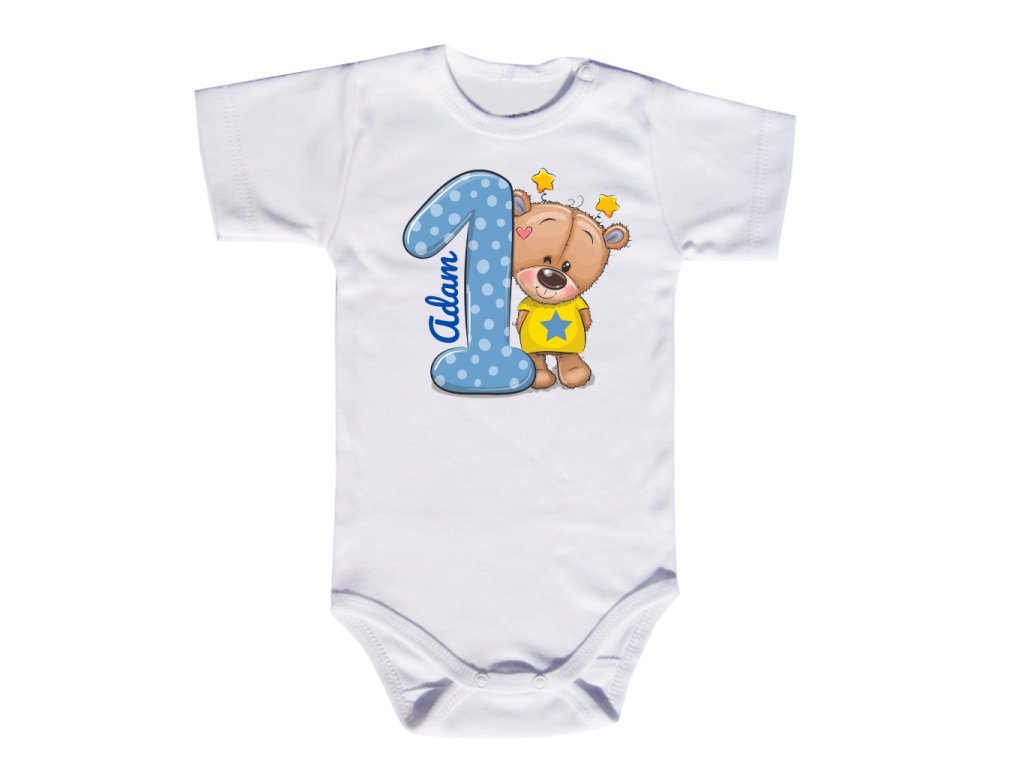 narodeninové body s menom - prvé narodeniny medvedik - krátky rukáv